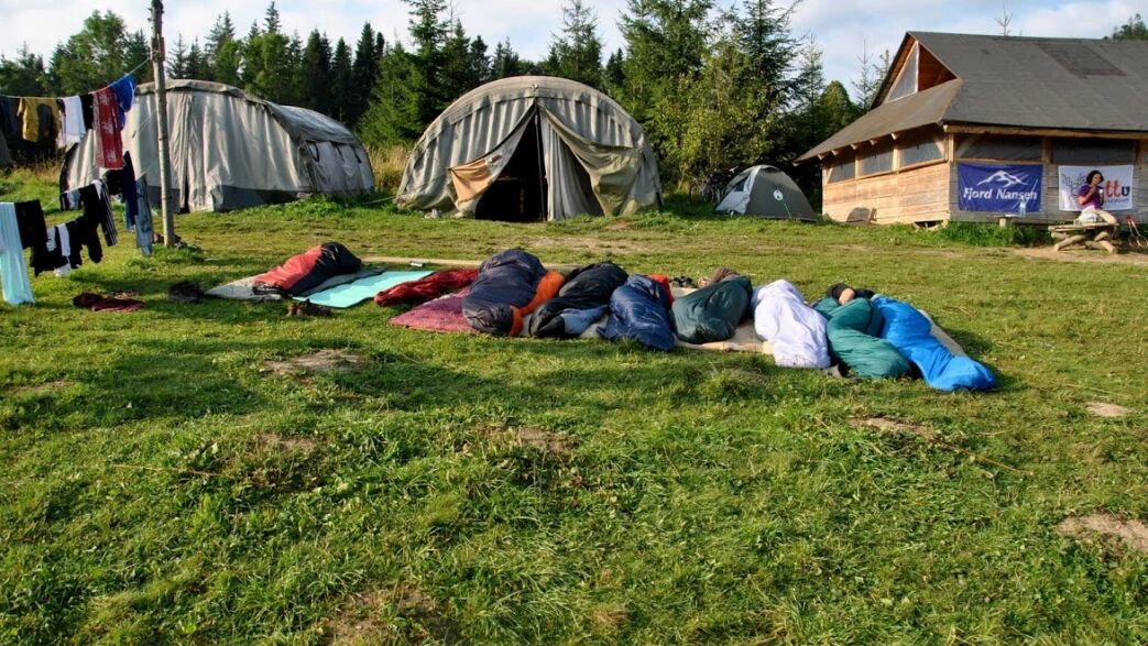 Noclegi realizujemy w bazach o różnym standardzie – śpimy w schroniskach lub w namiotach. Czasami w bazach namiotowych (duże namioty z materacami). Zdarzają się też noclegi w gospodarstwach agroturystycznych, na sianie, a pod warunkiem dobrej pogody i na życzenie uczestników nawet pod gołym niebem.